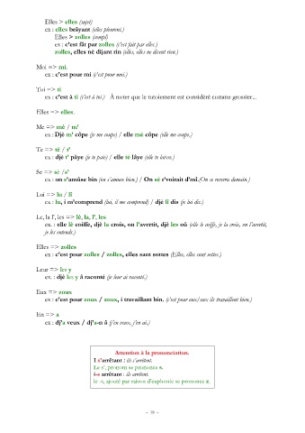 ex : c’est pour zolles / zolles, elles sant sottes (Elles, elles sont sottes.)