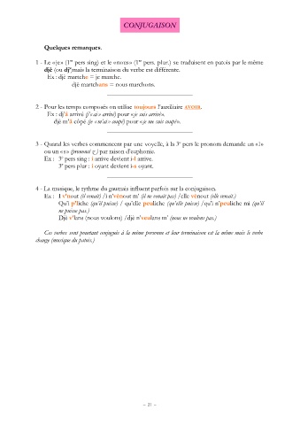 1 - Le «je» (1 pers sing) et le «nous» (1 pers. plur.) se traduisent en patois par le même