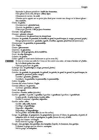 Gorge : la goûrdge, el gargosson, la gargoulette (pomme d’Adam), la gamache, el potrî, èl