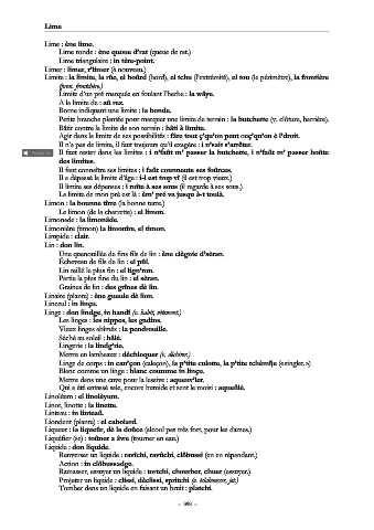 Limite : la limite, la rûe, el boûrd (bord), el tchu (l’extrémité), el tou (le périmètre), la frontière