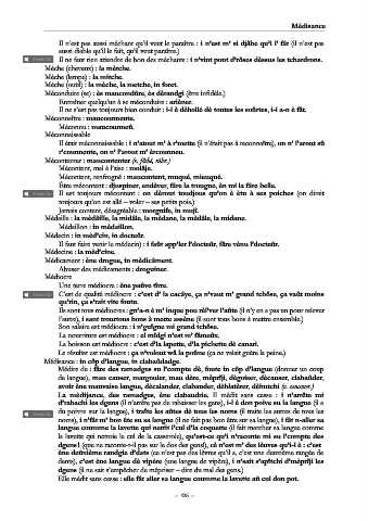 La mèdijance, des ramadges, ène clabaudrie. Il médit sans cesse : i n’arrête mi