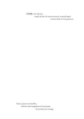 à Cécile, mon épouse, auprès de qui j’ai toujours trouvé un grand appui et dont l’aide m’a été précieuse. Merci à Jean-Luc Geoffroy. dont les encouragements m’ont permis de terminer cet ouvrage.