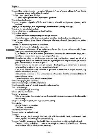 Tripoter : tripoter, trigaûder (falsifier une boisson), trimachi (manigancer), tripouyi, trich’