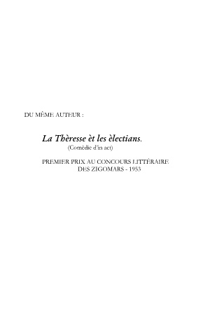 DU MÊME AUTEUR : La Thèresse èt les èlectians. (Comèdie d’in act) PREMIER PRIX AU CONCOURS LITTÉRAIRE DES ZIGOMARS - 1953