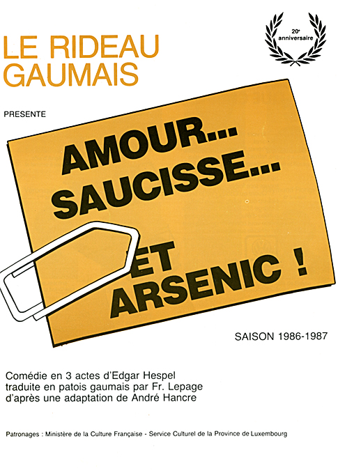 Amour saucisses et arsenic... (programme) Edgar Hespel Livret - programme de la pièce Le Rideau Gaumais, 1986. |