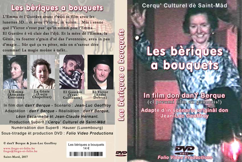 Les bèriques a bouquets Jean-Luc Geoffroy Film super 8 en patois gaumais (le premier et le seul!), numérisé et édité en DVD. Cercle culturel de Saint-Mard, 1988 et 2017. |