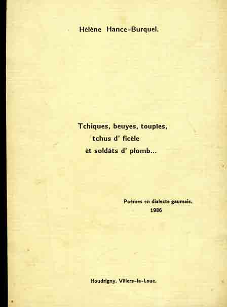Tchiques, beuyes, toupies, tchus d'ficèle èt soldâts d'plomb Hélène Hance-Burquel Poèmes Chez l'Auteure, 1986. |