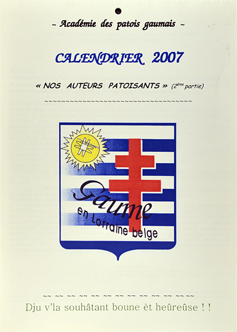 Calendrier gaumais 2007 Collectif Textes divers en gaumais entre autres Académie des Patois Gaumais, 2006. |