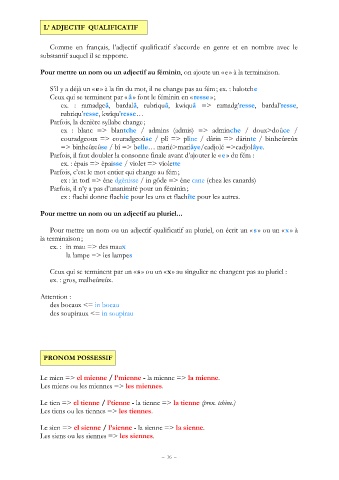 Comme en français, l’adjectif qualificatif s’accorde en genre et en nombre avec le