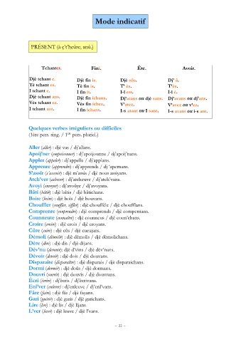 Disparaite (disparaître) : djè disparais / djè disparaichans.
