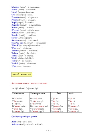 I-l è posé. I s’è souvnu. I-l è ètu. I-l è eû.