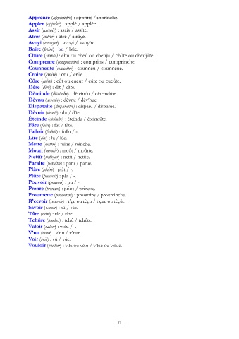 Vouloir (vouloir) : v’lu ou vèlu / v’lûe ou vèlue.