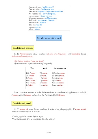 Si djè r’trouvous ma balle, – condition : (le verbe est à l’imparfait.) – djè pourrains djouer