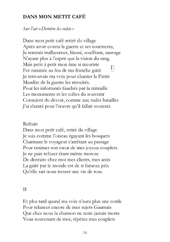 Vous souvenant de moi, répétez mes couplets