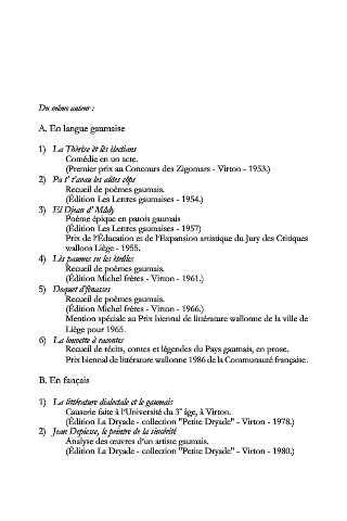 Prix biennal de littérature wallonne 1986 de la Communauté française.