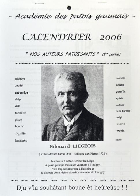 Calendrier gaumais 2006 Collectif Textes divers en gaumais entre autres Académie des Patois Gaumais, 2005. |